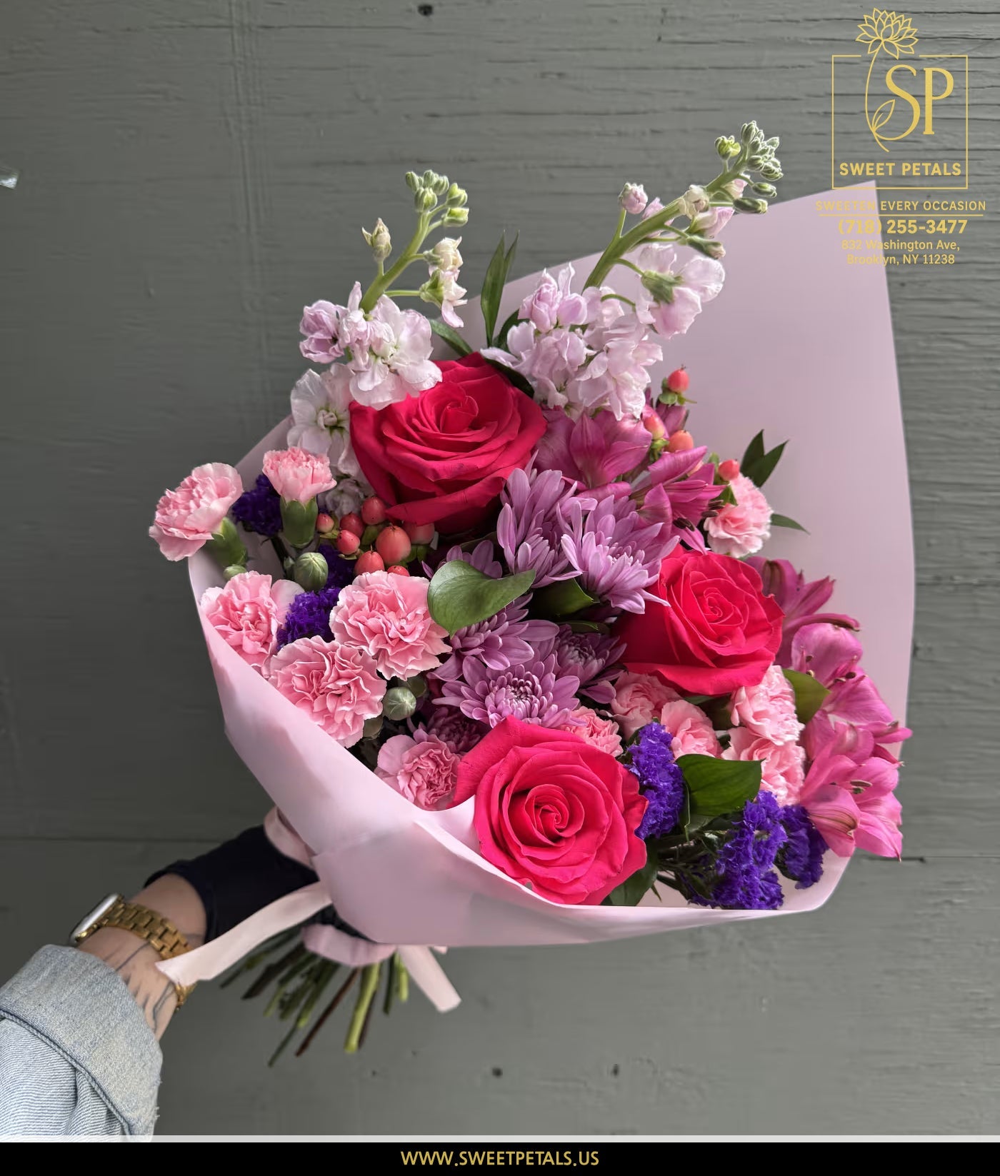 Flowers by SweetPetals – Brooklyn introduces Raspberry, a bold and enchanting bouquet inspired by the rich, romantic hues of ripe berries. Featuring deep pink roses, vibrant carnations, and seasonal accents, this arrangement is perfect for anniversaries, birthdays, or any celebration that calls for elegance and passion.
