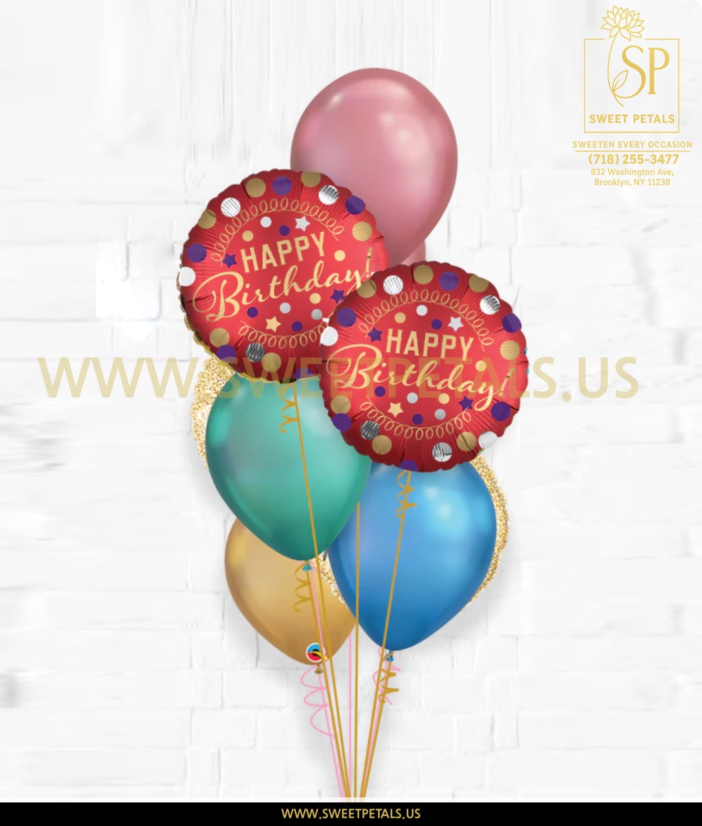 Handcrafted with care by the talented team at SweetPetals Brooklyn, each balloon bouquet comes complete with a sturdy weight to keep your balloons beautifully anchored for the entire celebration. Whether displayed at a party entrance, used as a table centerpiece, or given as a thoughtful gift, the Red Satin Party Chrome Balloon Bouquet is designed to Sweeten Every Occasion.