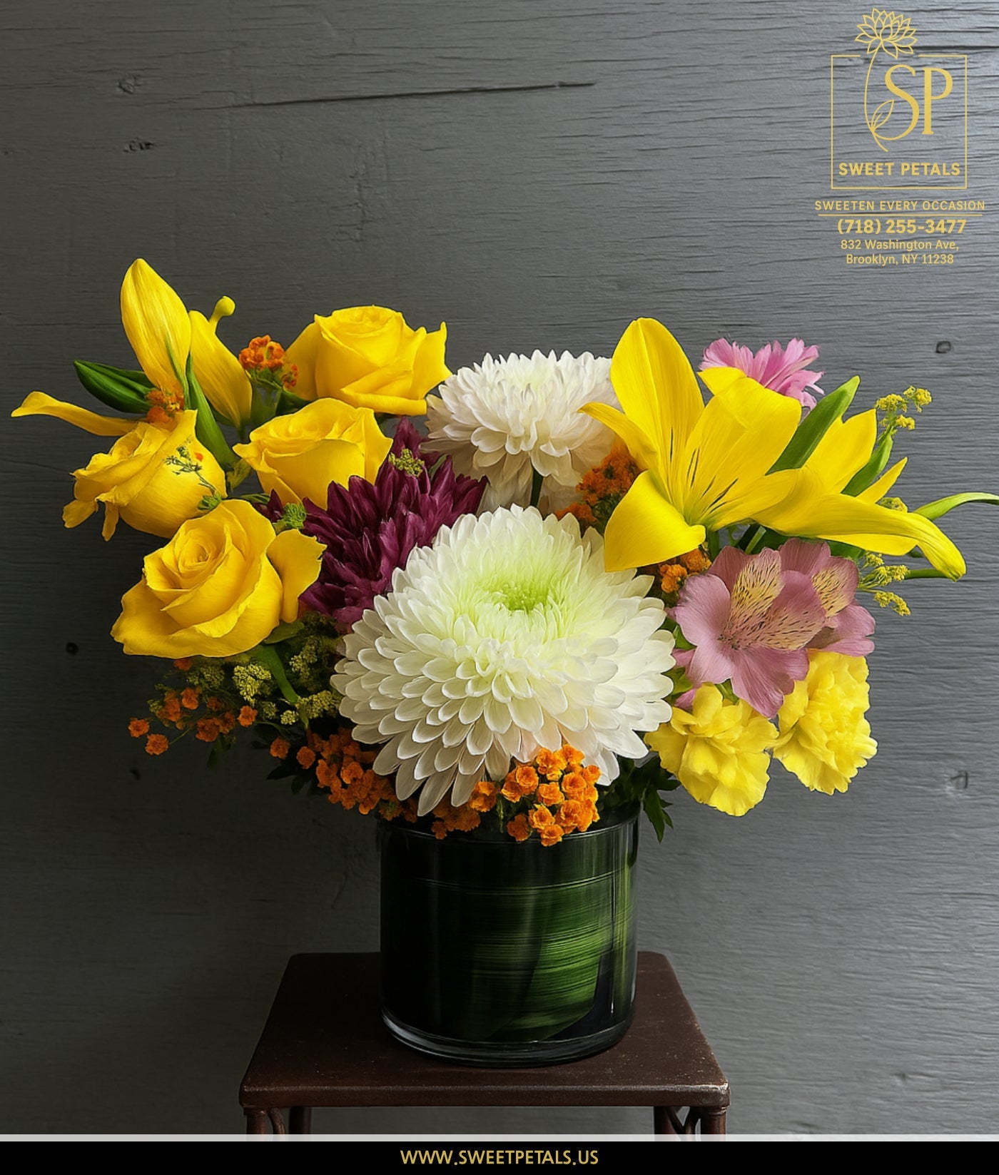 Whether wrapped in our elegant signature paper or styled in a keepsake vase, Sunshine Rose arrives fresh, fragrant, and full of cheer. With same-day delivery available across Brooklyn, Flowers by SweetPetals – Brooklyn ensures your gift will leave a lasting impression filled with sunshine and smiles.